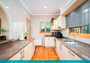 Die Offene Küche mit Ceranfeld ist ausgestattet mit Kühlschrank, Mikrowelle, Backofen, Gefrierschrank, Waschmaschine, Spülmaschine, Geschirr/Besteck, Kochutensilien, Kaffeemaschine, Friteuse, Toaster, Wasserkocher und Saftpresse.