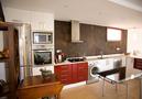 - Küche-Esszimmer mit Gasherd, Elektroofen, Mikrowelle, Geschirrspülmaschine, Kühlschrank, Kaffeemaschine und Wasserkocher