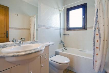 Im Erdgeschoss finden Sie ein gemütliches Wohn-Esszimmer mit Zugang zu einer großen überdachten Terrasse und dem Pool. Die Küche ist unabhängig und komplett ausgestattet mit einem Cerankochfeld und einem Geschirrspüler. Auf dieser Etage befinden sich außerdem zwei Schlafzimmer mit zwei Einzelbetten, ein Badezimmer mit Badewanne und ein großes Schlafzimmer mit einem Doppelbett und einem eigenen Badezimmer mit Badewanne.
