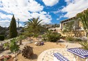 Die Villa verfügt über einen schönen, weitläufigen mediterranen Garten. Der Pool verfügt über eingebaute Treppen und Sonnenliegen zum Sonnenbaden, eine hölzerne Pergola und eine Arbeit mit einem Tisch für mehrere Gäste mit einem eingebauten Gasgrill im Freien und einer kostenlosen Toilette zur Wartung des Pools. Neben der Toilette des Pools befindet sich auch ein kleiner Waschmaschinenraum mit einem kleinen Kühlschrank.