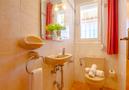 - Badezimmer mit Einzelwaschbecken und Dusche