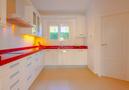 - Küche mit Elektroherd, Elektroofen, Mikrowelle, Geschirrspülmaschine, Kühl-Gefrierkombination, Kaffeemaschine, Wasserkocher, Brotröster und Entsafter