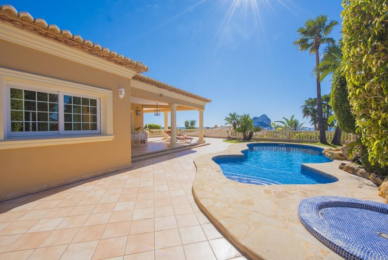Im Aussenbereich:Grosser Pool mit römischer Treppe und beeindruckenden Meeresblick und Blick auf den Peñon de Ifach. Komplett ausgestattete Sommerküche mit Gasherd, Kühlschrank und Küchenausstattung, sowie Klimaanlage.