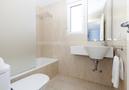 - Badezimmer mit Einzelwaschbecken, Badewanne und Toilette