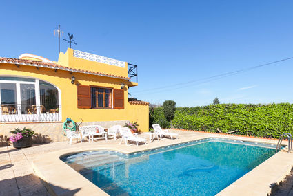 Partida Tossals 5 km von Dénia: Gemütlicher, komfortabler Landsitz "Mercedes", umgeben von Feldern und Weinbergen. Ruhige, sonnige Lage, 3 km vom Meer, 3 km vom Strand, in einer Sackgasse, Richtung Südosten. Zur Alleinbenutzung: grosser, gepflegter Garten (eingezäunt), Obstgarten, Schwimmbad eckig (4 x 8 m, 80 - 200 cm tief, saisonale Verfügbarkeit: 01.Jan. - 31.Dez.). Aussendusche, Poolhaus mit Kochherd, Terrasse (70 m2), Grillhaus. Im Hause: Sonnenterrasse. Parkplatz auf dem Grundstück. Supermarkt 1.5 km, Einkaufszentrum 2 km, Restaurant 1 km, Bäckerei 1.5 km, Bushaltestelle "ondara" 1 km, Sandstrand "platja molins" 7 km, Tauchzentrum 7 km. Surfschule 7 km. Nahe gelegene Sehenswürdigkeiten: Dénia 7 km, Xábia. Wandergebiete: escalones del barranc de l'infern 15 km, Rutas parque natural Montgo 9 km.