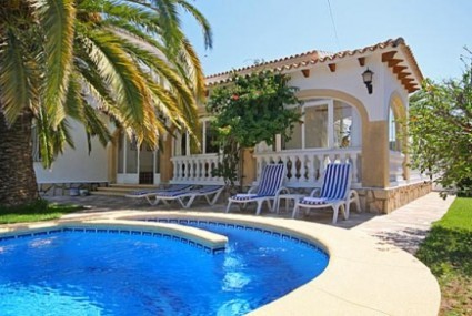 Villa mit privatem Pool in Denia, an der Costa Blanca, Spanien für 8 Personen. Die Villa liegt in einer residentiellen Umgebung und etwa 1 Km entfernt vom Strand von Deveses.