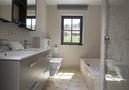 - ensuite Badezimmer mit Doppelwaschbecken, Badewanne, Dusche und Wasserklosett