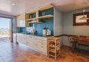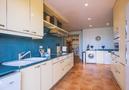 - Küche mit Elektroherd, Elektroofen, Mikrowelle, Geschirrspülmaschine, Kühl-Gefrierkombination, Kaffeemaschine, Wasserkocher, Mixer, Toaster und Entsafter