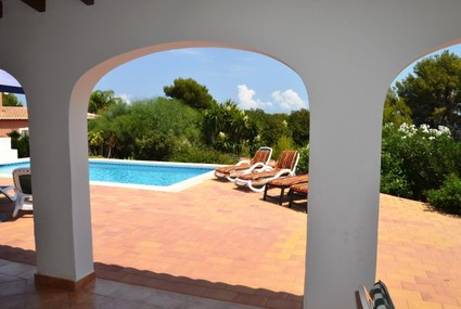 mieten in Jávea Casa la Finca in Jávea, 2-stöckiges Ferienhaus, für 6 Personen, verfügt über Internet, 3 Schlafzimmer, 3 Bäder, Alarmanlage und privater Pool von 8x4 m, Poolterrasse mit Gartenmöbeln, 6 Sonnenliegen, eine überdachte Terrasse mit Gartenmöbeln, einem Korbsofa, 2 Sesseln und Barbecue. Ferienhaus La Finca hat eine Fläche von 200 m2 auf einem Grundstück von 1.000 m2 und befindet sich in der Urbanisation Adsubia in Jávea. mieten in Jávea Casa La Finca bietet Meerblick von der Terrasse im 1. Stock in der Ferne. Es gibt ein Wohn- / Esszimmer im Erdgeschoss, mit 2 Sofas, 1 Sessel, Esstisch für 6 Personen, Breitbild-Fernsehen, Radio mit CD, DVD-Player, Ventilator, Rolläden und Schiebetüren zur überdachten Terrasse.Casa La Finca hat in einer Amerikansicher Küche im Erdgeschoss, mit Ceranfeld, Backofen, Waschmaschine, Mikrowelle, Geschirrspüler, Wasserkocher, Kaffeemaschine, Toaster und Kühl/ Gefrierkombination. Es gibt ein Gäste-WC neben der Küche. Die Entfernung zum Strand Arenal mit Geschäften, Promenade, Restaurants und Bars beträgt: 1,5 km. Haustiere sind nicht erlaubt. mieten in Jávea