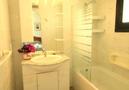 - ensuite Badezimmer mit Einzelwaschbecken und Badewanne mit Dusche