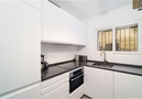 - Wohnküche mit Elektroherd, Elektroofen, Kühl-Gefrierkombination, Kaffeemaschine, Wasserkocher, Mixer, Brotröster und Entsafter