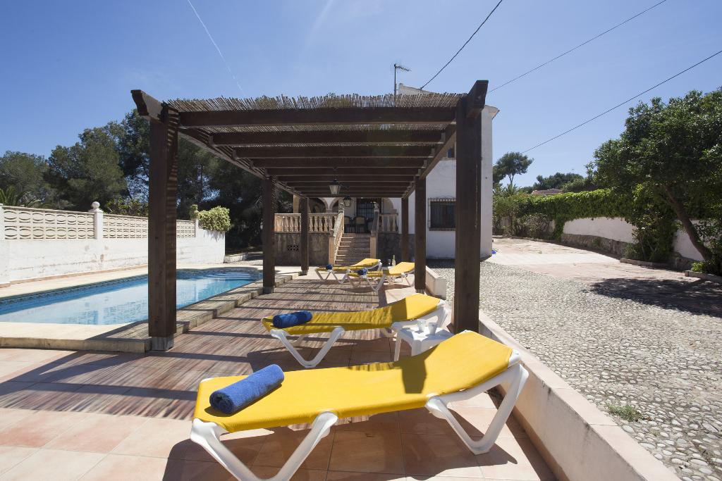 Rustikale und romantische Villa in Javea, an der Costa Blanca, Spanien mit privatem Pool für 10 Personen. Das Haus liegt in einer residentiellen Umgebung und etwa 3 Km entfernt vom Strand von El Arenal, Javea.