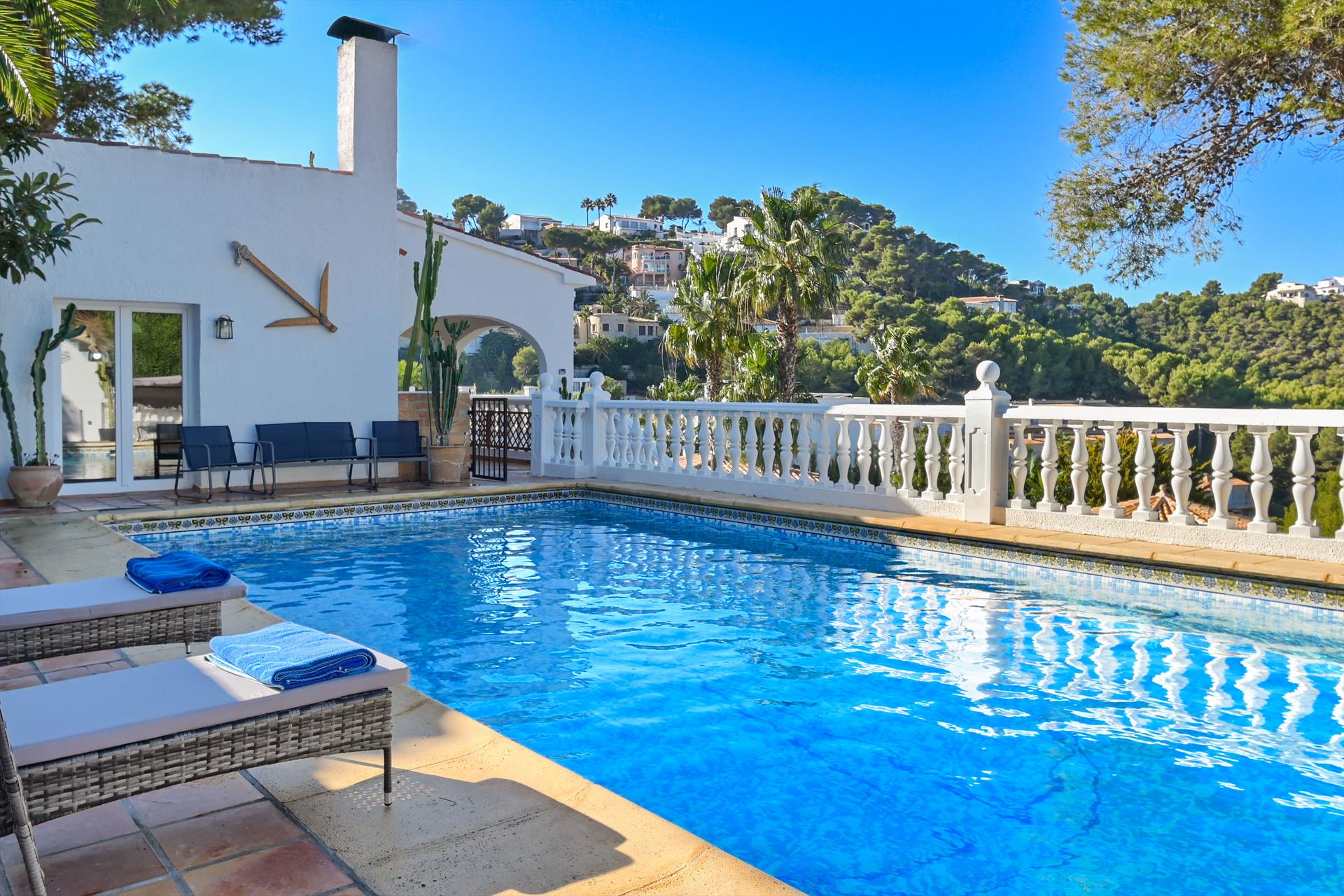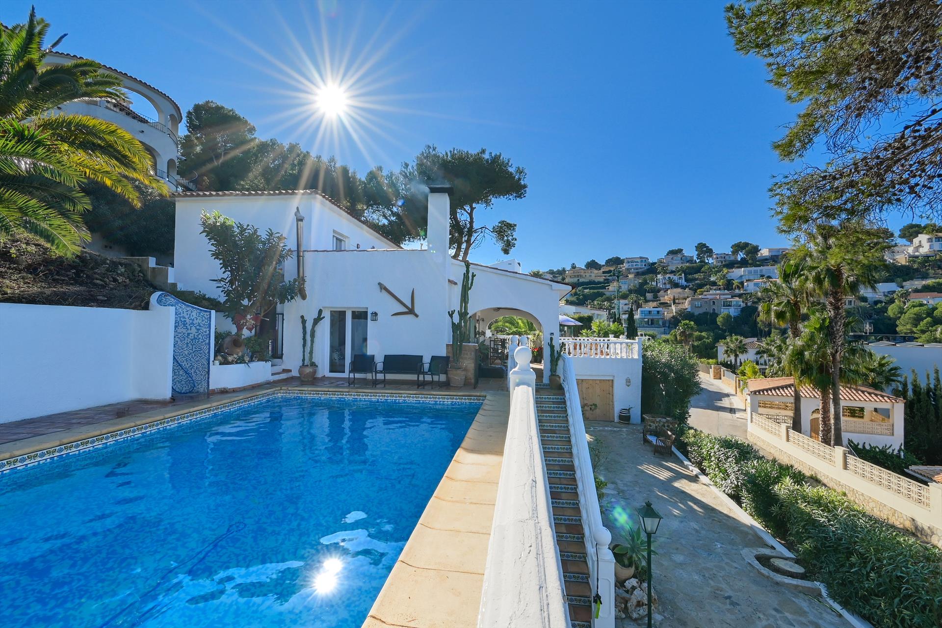 Villa in Javea, Costa Blanca, Spanien, mit privatem Pool für 8 Personen. Das Haus befindet sich in einem Wohngebiet am Strand.