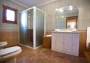- Badezimmer mit Einzelwaschbecken, Dusche und Toilette