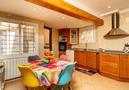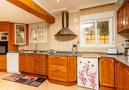 - Küche mit Elektroherd, Elektroofen, Mikrowelle, Geschirrspülmaschine, Kühl-Gefrierkombination, Kaffeemaschine, Wasserkocher, Mixer, Toaster und Entsafter