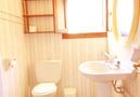 - Badezimmer mit Einzelwaschbecken, Dusche und Wasserklosett