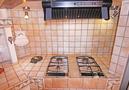 - Küche mit Gasherd, Mikrowelle, Geschirrspülmaschine, Kühlschrank, Kaffeemaschine und Brotröster