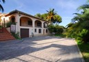 Außenansicht der Villa: Auf einem 1000 m² großen Grundstück verfügt sie über einen Parkplatz für mehrere Autos und einen großen Poolbereich mit eingebauter Außendusche, einen Hängemattenbereich zum Sonnenbaden, einen Esstisch und einen eingebauten Grill.