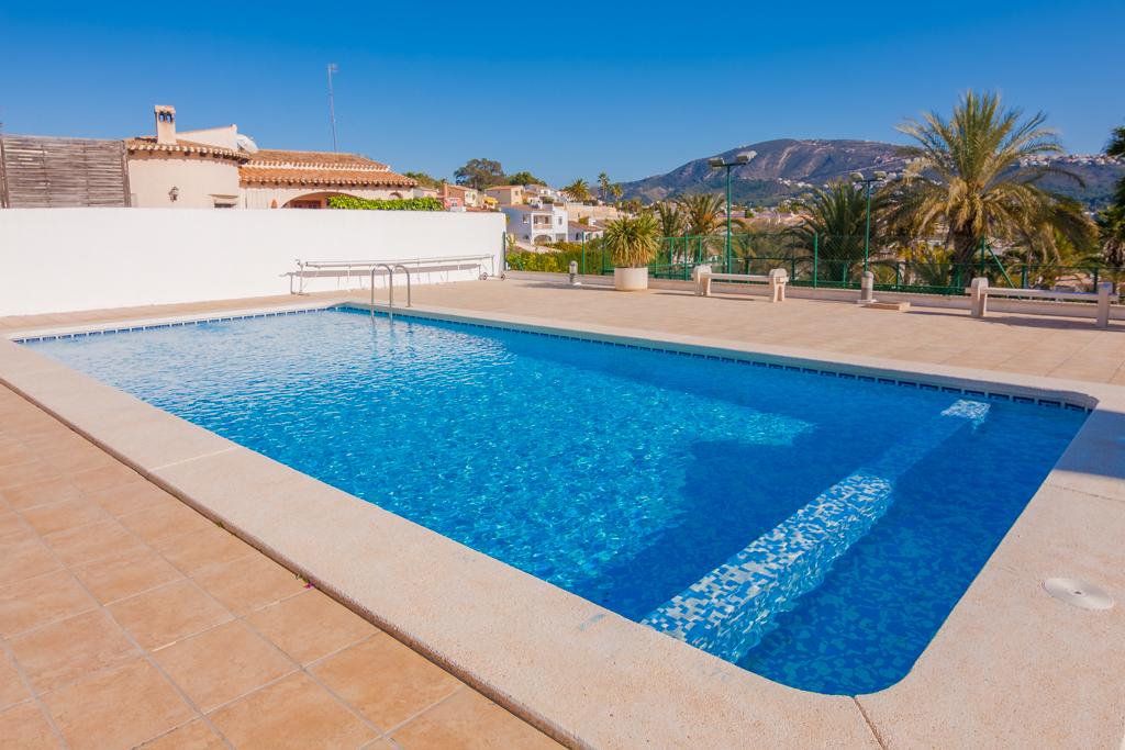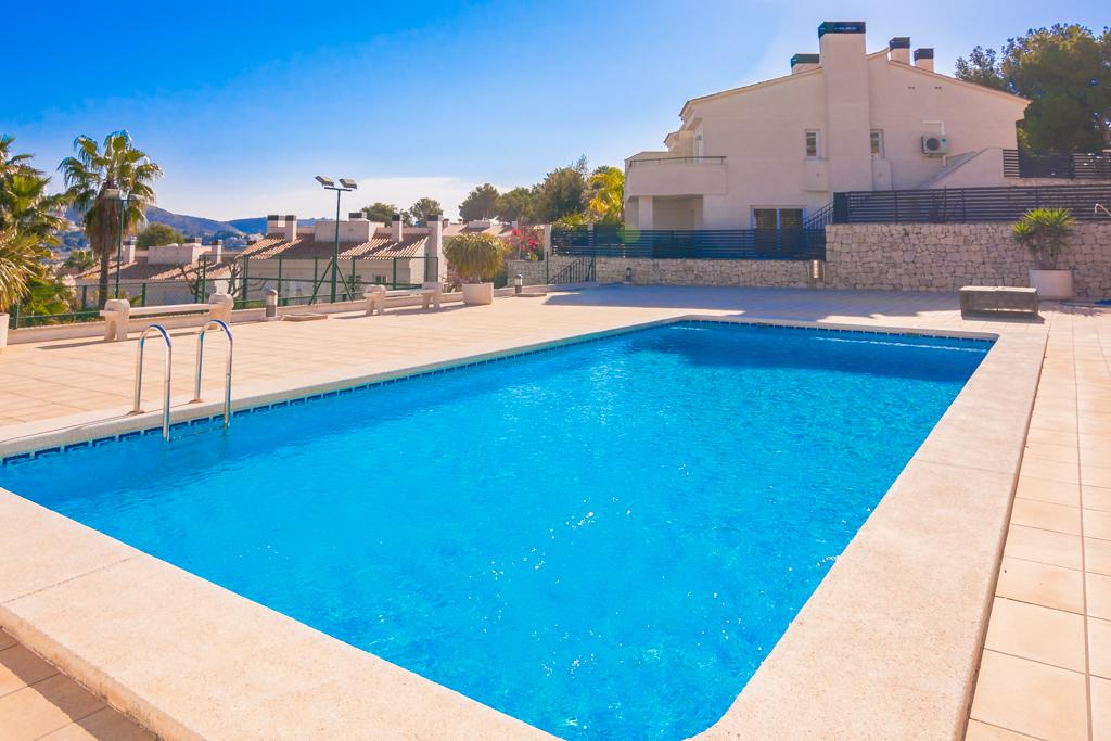 Modernes und komfortables Ferienhaus mit Gemeinschatspool in Moraira, Spanien für 6 Personen, für angenehme Ferien an der Costa Blanca mit Familie, Freunden und auch den Haustieren. Das Ferienhaus liegt in einer hügeligen, waldreichen und städtischen Umgebung, in der Nähe von einer Tennisbahn und etwa 2 Km entfernt vom Strand von Ampolla.