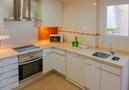 - Küche mit Elektroherd, Elektroofen, Mikrowelle, Geschirrspülmaschine, Kühlschrank, Kaffeemaschine und Brotröster