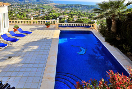 Sehr schöne Villa "Meerblick", auf 2 Stockwerken. 3 km vom Zentrum von Moraira, ruhige, sonnige Lage am Hang, 3 km vom Meer, 3 km vom Strand. Zur Alleinbenutzung: Grundstück 1'000 m2 (eingezäunt), Schwimmbad eckig (4 x 8 m, 01.01.-31.12.) mit Innentreppe. Aussendusche, Poolhaus mit WC. Im Hause: Zentralheizung. Parkplatz (für 2 Autos) auf dem Grundstück. Einkaufsgeschäft 1.4 km, Lebensmittelgeschäft 1.4 km, Supermarkt 1.4 km, Restaurant 1.4 km, Bar 1.4 km, Sandstrand "L'Ampolla" 3 km. Golfplatz (9 Loch) 4 km, Tennis 3 km. Bitte beachten: geeignet für Familien. Jugendgruppen nur auf Anfrage.
