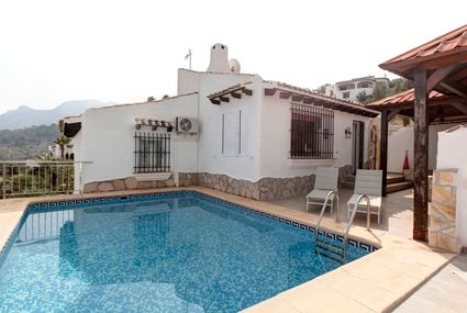 Sehr schönes, gemütliches, komfortables Haus "Indalo", auf 2 Stockwerken. Im Ortsteil Monte Pego, ruhige, sonnige, erhöhte Lage. Zur Alleinbenutzung: schöner, gepflegter Terrassengarten mit Pflanzen und Blumen, Schwimmbad eckig (4 x 6 m, 01.01.-31.12.) mit Innentreppe. Aussendusche, Poolhaus mit WC, Laube, Terrasse, Gartenmöbel, Grill. Im Hause: mit TV, Wireless LAN, Zentralheizung, Klimaanlage, Waschmaschine. Parkplatz auf dem Grundstück. Einkaufsgeschäft 6 km, Supermarkt 6 km, Einkaufszentrum 12 km, Restaurant 1 km, Bar 1 km, Sandstrand 10 km. Golfplatz 15 km, Tennis 1 km. Bitte beachten: Fahrzeug empfohlen.