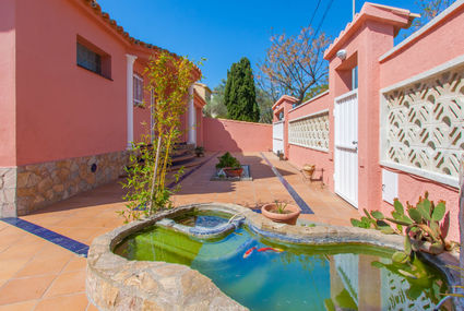 Requesens: Komfortables Einfamilienhaus "Requesens", auf 2 Stockwerken. Im Ortszentrum von Empuriabrava, zentrale, sonnige Lage im Villenviertel, exzellente Lage: Absolut zentral und dennoch ruhig, 400 m vom Meer, vom Kanal, 300 m vom Fluss, Richtung Süden. Zur Alleinbenutzung: Grundstück (eingezäunt), Obstgarten (eingezäunt), Teich, Schwimmbad (7 x 4 m, saisonale Verfügbarkeit: 01.Jan. - 31.Dez.). Aussendusche, Terrasse (400 m2), Gartenmöbel, Grill. Im Hause: Waschmaschine. Parkplatz beim Haus auf dem Grundstück. Einkaufsgeschäft, Lebensmittelgeschäft 100 m, Supermarkt 300 m, Einkaufszentrum 100 m, Restaurant, Bar 50 m, Café 100 m, Fußgängerzone 50 m, Bushaltestelle 200 m, Sandstrand "Empuriabrava" 300 m. Sporthafen 1 km, Golfplatz (18 Loch) 12 km, Tennis 3 km, Minigolf 600 m, Reitstall 4 km, Sportzentrum 1 km, Wanderwege ab Haus, Radweg 200 m. Nahe gelegene Sehenswürdigkeiten: Centro paracaidismo y túnel del viento 3 km, Parque Acuático Roses 6 km, Casino y festival de Peralada 14 km, Museo Dalí a Figueres 15 km, Ruïnes de Sant Martí de Empuries 21 km, Monasterio de Sant Pere de Rodes 23 km. Die Schlüsselübergabe findet bei der Agentur Interhome in Empuriabrava statt.Verfügbarkeit