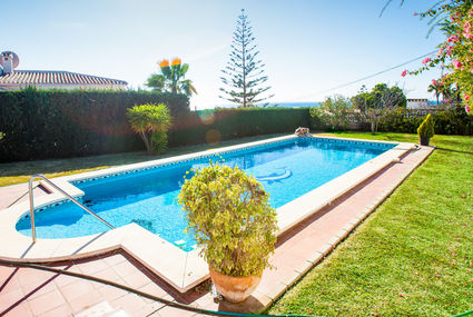 Benajarafe: Schönes, komfortables Einfamilienhaus "Sirena", auf 2 Stockwerken. Ruhige Lage, 600 m vom Meer, Richtung Osten. Zur Alleinbenutzung: mit Rasen, Schwimmbad eckig (12 x 4 m, 01.01.-31.12.). Dusche/WC im Poolbereich, Grill. Im Hause: Wireless LAN, Zentralheizung, Klimaanlage, Waschmaschine. Lebensmittelgeschäft, Restaurant, Bar, Café 300 m. Golfplatz (18 Loch) 6 km. Jugendgruppen nur auf Anfrage.