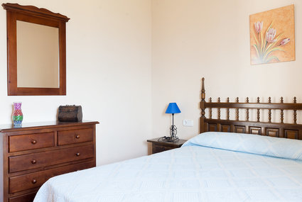 Zweckmässig und komfortabel eingerichtet: Wohn-/Esszimmer mit offenem Kamin (nur Deko), TV, Digital-TV und Ventilator. Ausgang zum Gartensitzplatz. 1 Zimmer mit 2 Betten (90 cm, Länge 190 cm), Ventilator. 1 Zimmer mit 1 franz. Bett (150 cm, Länge 190 cm), Ventilator. Offene Küche (Backofen, 4 Glaskeramikplatten, Toaster, Wasserkocher, Mikrowelle, Tiefkühler, elektrische Kaffeemaschine) mit Esstisch. Ausgang zum Gartensitzplatz. Bad/Bidet/WC. Grosser Gartensitzplatz. Terrassenmöbel, Gartengrill, Liegestühle (3). Herrliche Sicht auf das Meer und die Berge. Zur Verfügung: Waschmaschine, Bügeleisen, Fliegengitter, Kinderhochstuhl, Babybett bis 2 Jahre, Haartrockner. Internet (WLAN, gratis). Parkplatz Nr. 2. Bitte beachten: Rauchmelder, Feuerlöscher. Kaution von 950 Euro in bar für Jugend-Gruppen unter 25 Jahren. Es wird bei Übergabe der Schlüssel bezahlt und am Abreisetag zurückgegeben. CR/MA/01066