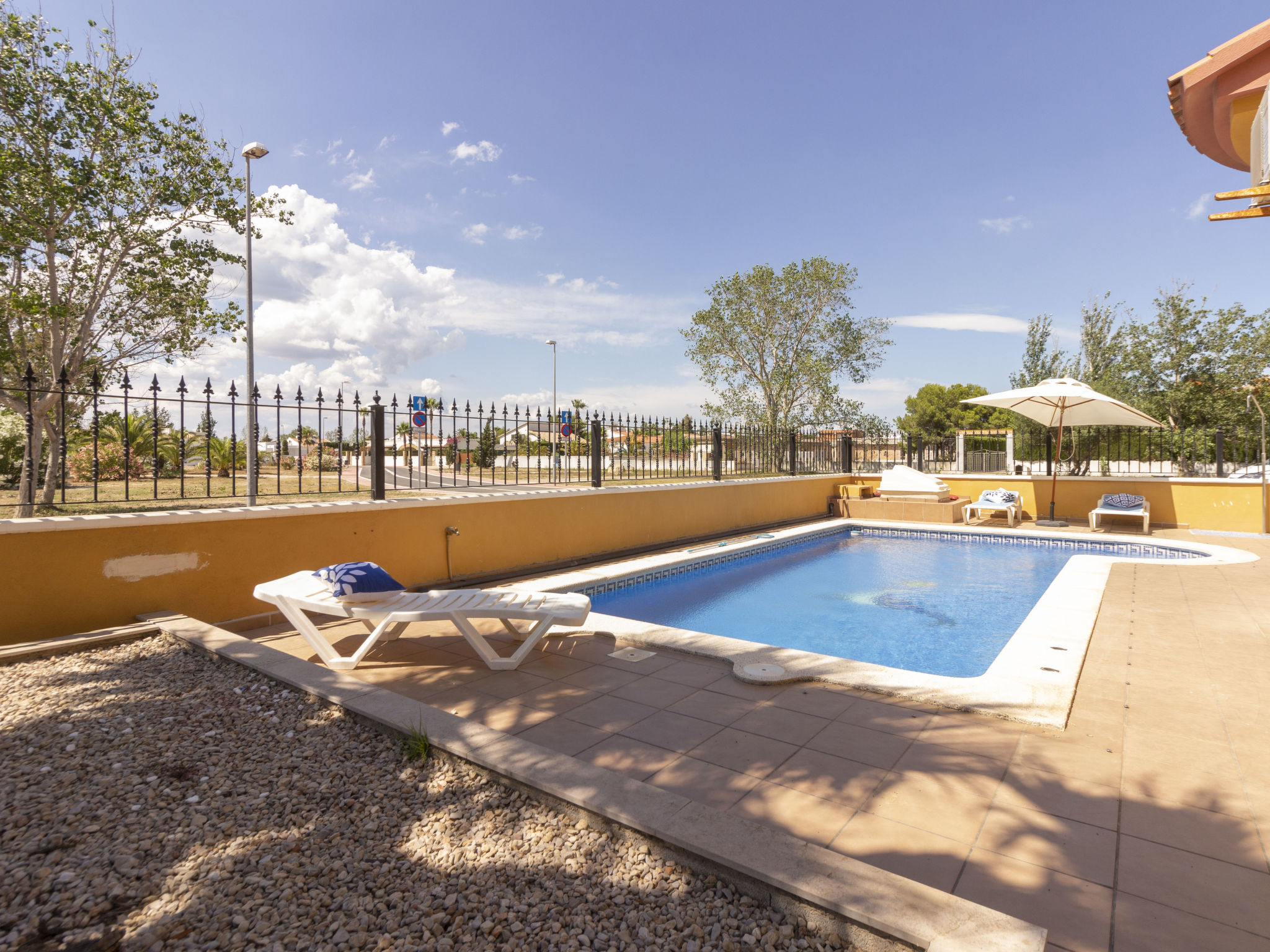 Riumar 8 km von Deltebre: Sehr modernes, schönes Haus "Pitiusa", auf 2 Stockwerken. Ruhige, sonnige Lage, 200 m vom Meer, 200 m vom Strand. Zur Alleinbenutzung: grosser, schöner Garten (eingezäunt), Schwimmbad eckig (01.01.-31.12.). Aussendusche, Gartenmöbel (Schaukel), Parkplatz (für 2 Autos) auf dem Grundstück. Einkaufsgeschäft, Restaurant, Bar 500 m. Jugendgruppen nur auf Anfrage.