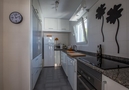 - Küche mit Elektroherd, Elektroofen, Mikrowelle, Geschirrspülmaschine, Kühl-Gefrierkombination, Kaffeemaschine, Mixer und Brotröster