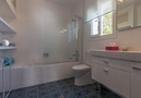- Badezimmer mit Einzelwaschbecken, Badewanne, Dusche und Toilette