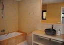 1 Master bedroom with king size bed and en suite bathroom with bathtub.