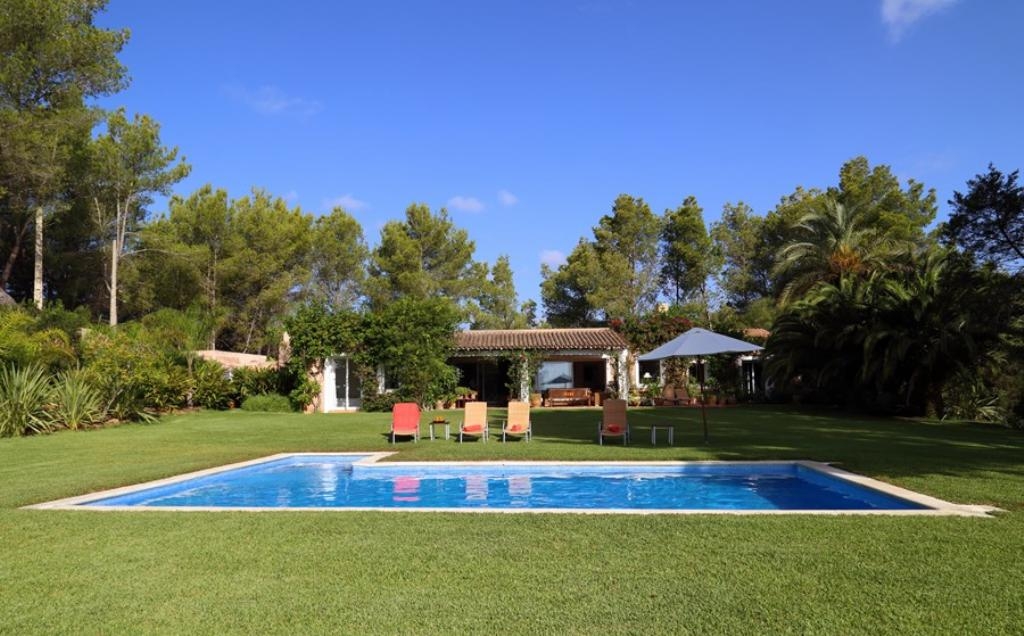 Villa in San Jose, auf Ibiza, Spanien mit privatem Pool für 8 Personen. Die Villa liegt in einer hügeligen, ländlichen und waldreichen Umgebung.