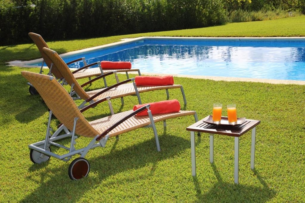 - wunderschöner Garten mit Rasen und Gartenmöbel mit Sonnenliegen