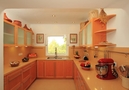 - Wohnküche mit Elektroherd, Elektroofen, Mikrowelle, Geschirrspülmaschine, Kühlschrank, Gefrierschrank, Kaffeemaschine, Wasserkocher, Mixer, Brotröster und Entsafter