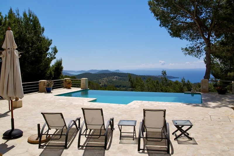 Superb villa situated on a hill with stunning views over the south coast, Es Cubells, Porroig, and the island of Formentera. All beaches on the South West coast are within a radius of 15 km. Cala Tarida, where our local office is located on 12 minutes. A supermarket, bars and restaurants are within 2 km. San Jose village 7 km away and Ibiza town at 18 km. Villa has a large covered terrace. Further classification: