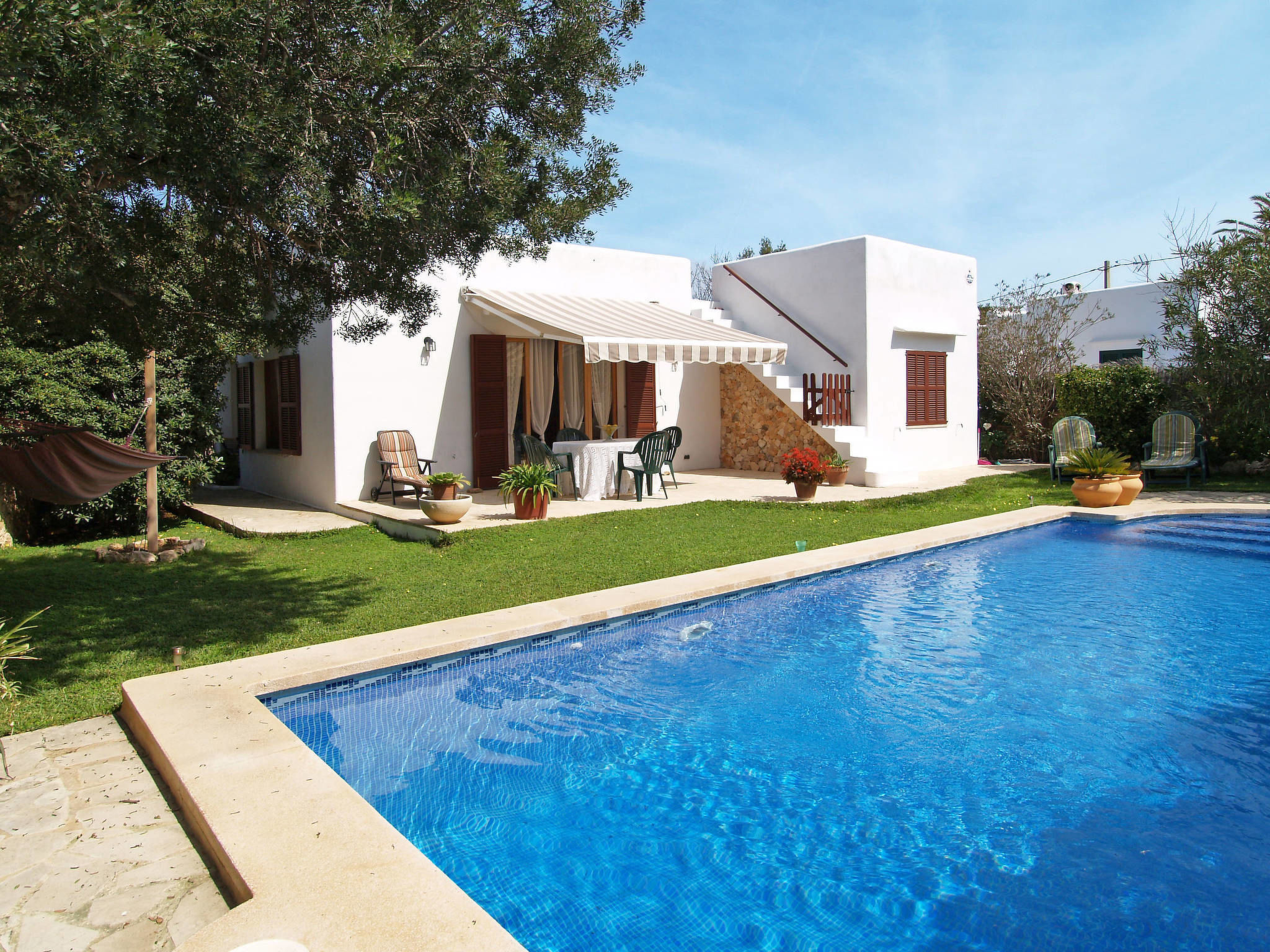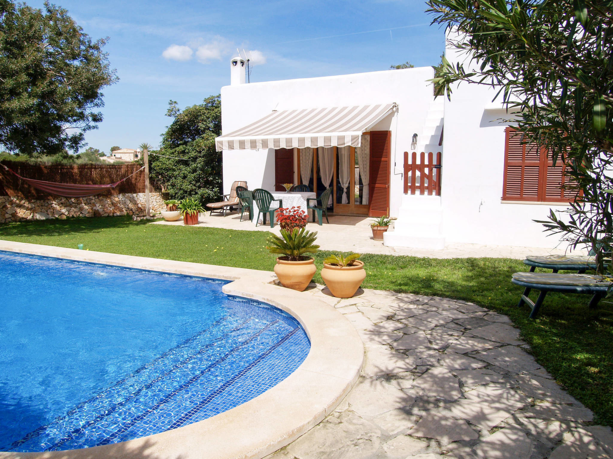 Das hübsche Ferienhaus steht nahe der bekannten Cala Mondragó, zwischen Cala Figuera (6 km) und dem Strand S'Amarador (ca. 900 m), der unmittelbar an die Cala Mondragó anschließt. Viele Sommerhäuser der Mallorquiner liegen in dieser weitläufigen Wohnsiedlung zwischen der Steilküste und dem Hinterland. Nächste Einkaufsmöglichkeit, Restaurants und Bars in Cala Figuera. Auf dem ca. 400 m² großen, umzäunten Grundstück liegt hinter dem Haus der Pool (8 x 4 m, gesamte Saison) mit Sonnenliegen, Sonnenschirm und Außendusche. Eine kleine Rasenfläche, der Vorgarten mit Ziersträuchern und seitlich die gemauerte Grillstelle mit Essplatz runden die Gartengestaltung ab. Am Haus Terrasse mit Markise und Mobiliar, zusätzlich Dachterrasse. Parkmöglichkeit auf dem Grundstück.Gute, freundliche Einrichtung. Fliesenböden. Sat-TV (deutsche Programme), Radio/CD. Waschmaschine, Bügeleisen/-brett. 2 Elektroradiatoren.Hinweis: Rauchen ist im Haus nicht gestattet.Verfügbarkeit