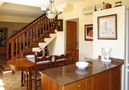 145 m². Zugang über 3 Stufen. Wohnraum mit Sitzcouch, Kamin (Einsatz) und Essplatz, durch Theke abgeteilte Küche (4 Flammen, Backofen, Mikrowelle, Geschirrspüler, Kühl-/Gefrierkombination, Kaffeemaschine, Toaster), Terrassenausgang. Sep.WC. Über Stufe nach unten zu weiterem Wohnraum mit Sitzgruppe und Terrassenausgang. Vom Essplatz Treppe zur 1. Etage: Schlafzimmer mit franz. Bett (1,40 m breit), Bad/WC. Schlafzimmer mit franz. Bett (1,80 m breit), Sessel, Terrassenausgang, Bad/Doppelwaschbecken/WC. 2. Etage: Zweibettzimmer, Bad/WC. VT/105269