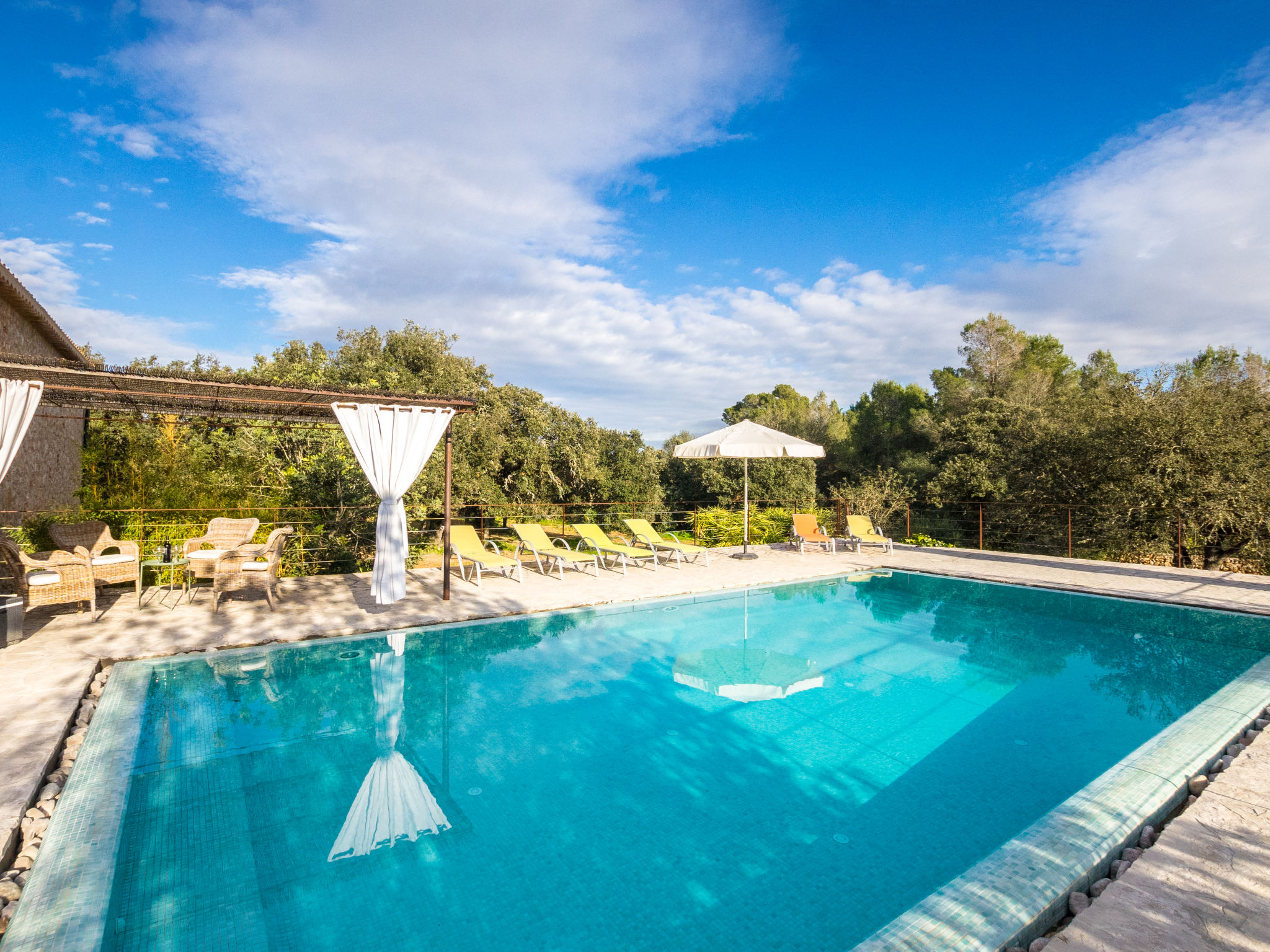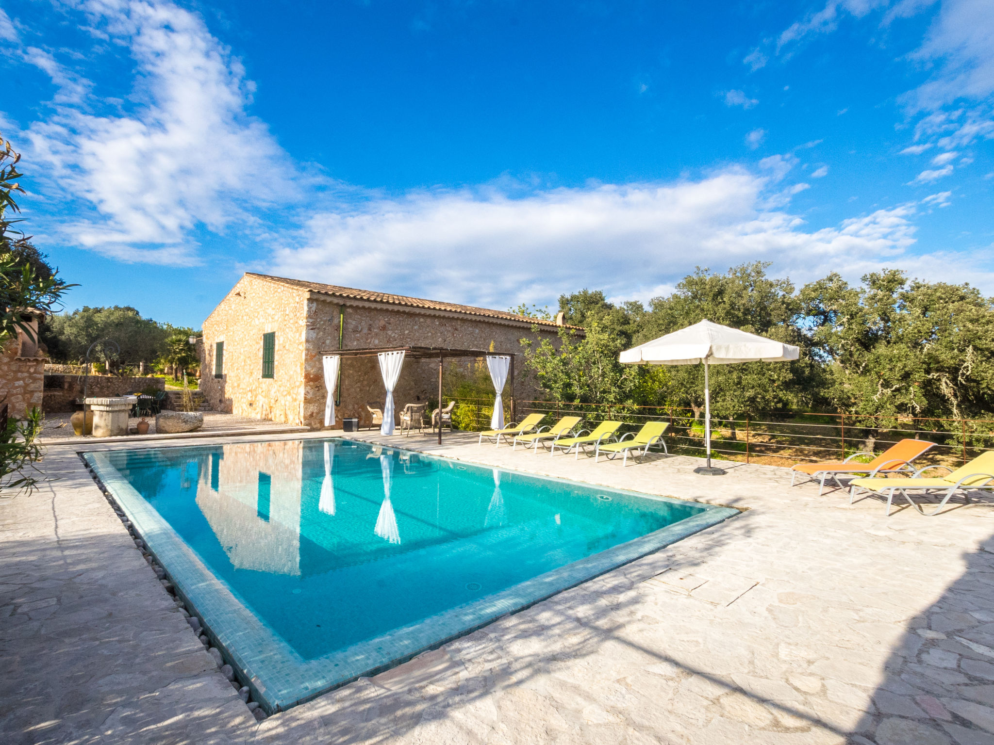 2 km von Costitx: Sehr grosse, gemütliche, komfortable Villa "Ses Murteres", umgeben von Bäumen und Feldern. Ausserhalb des Ortes, ruhige, sonnige Lage, 33 km vom Meer, im Grünen. Zur Alleinbenutzung: naturbelassenes Grundstück (eingezäunt), Garten mit Pflanzen und Bäumen, Schwimmbad eckig (10 x 5 m, 90 - 190 cm tief, 01.01.-31.12.) mit Salzelektrolyse-Reinigungssystem. Dusche/WC im Poolbereich, Aussendusche, Tischtennis, Sitzplatz, Laube, Pergola, Gartenmöbel, Grill. Im Hause: Internetzugang, Wireless LAN, Tischtennis, Einstellraum für Fahrräder, Zentralheizung, Waschmaschine. Parkplatz beim Haus auf dem Grundstück. Lebensmittelgeschäft 2.5 km, Supermarkt 2.6 km, Einkaufszentrum 20 km, Restaurant 2.6 km, Bar 2.5 km, Fußgängerzone 2.5 km, Zentrum zu Fuss in 35 Minuten erreichbar, Bushaltestelle 2.5 km, Sandstrand 32 km, Felsstrand 33 km. Sporthafen 32 km, Golfplatz (18 Loch) 32 km. Nahe gelegene Sehenswürdigkeiten: Ruta Arqueológica Costitx, Observatorio Astronómico de Costitx. Bitte beachten: Fahrzeug empfohlen. Geeignet für Familien, geeignet für Senioren. Objekt geeignet für 8 Erwachsene Jugendgruppen nur auf Anfrage. Be- und Entladen am Ferienhaus möglich. Tiere in der Umgebung.
