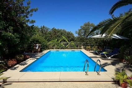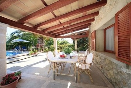 Die eingeschossige Finca liegt ruhig und ländlich nur 4 km von Pollenca entfernt. Der 7,5m x 4m große und 0,80m bis 1,30m tiefe, mit Treppen- und Leitereingang versehene Pool ist von einem mediterranen Garten umgeben. Sonnenliegen und Sonnenschirme liegen für Sie auf dem gepflasterten Bereich rund um den Pool bereit. Die große überdachte Terrasse ist mit bequemen Möbeln ausgestattet und beinhaltet einen gemauerten Grill auf den Sie leckere Gerichte zubereiten können. Von hier aus gelangen Sie in dem geräumigen Wohn- und Essbereich mit hohen Holzbalkendecken und typisch mallorquinischen Ausstattung. Die gemütliche Sitzecke lädt zum Verweilen ein. Für spannende Unterhaltung sorgen der Fernseher mit SAT TV so wie eine Musikanlage, ein CD und ein DVD Player. Am Esstisch für 4 Personen können Sie mit Blick in den Garten Ihre gemeinsamen Mahlzeiten genießen. Der offene Kamin ist nur dekorativ.