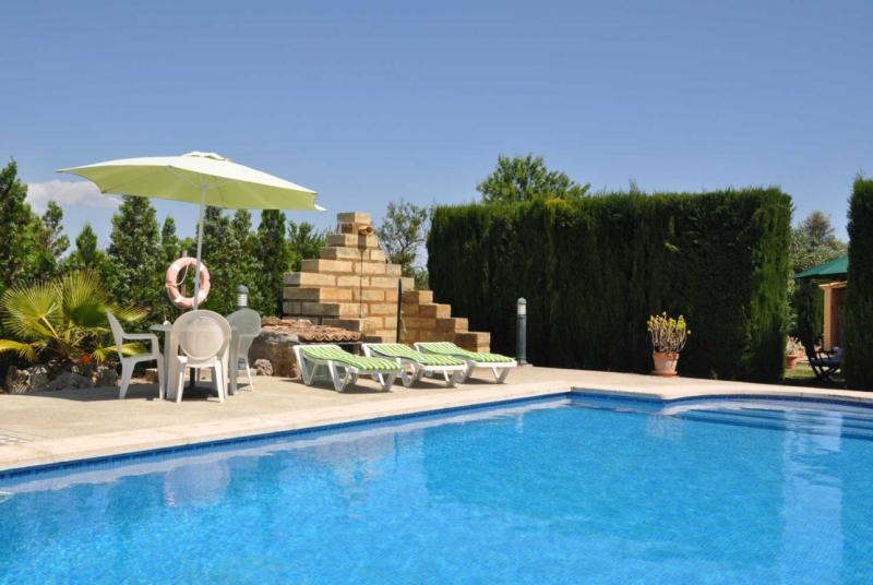 Gemütliches Ferienhaus mit großem Pool in einer ruhigen Umgebung mit fantastischem Panoramablick auf die Berge der Serra de Tramuntana, ungefähr ein Kilometer entfernt vom Santa Maria Stadt. \r\n